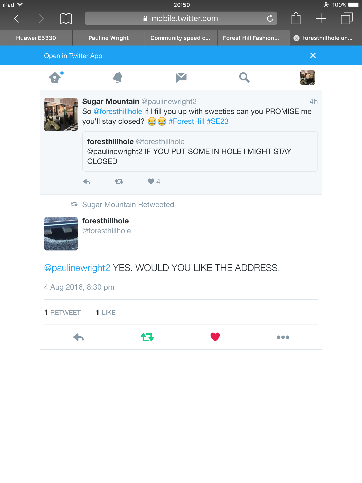 On behalf of the Forest Hill Society I have written a strongly worded Tweet to the hole.