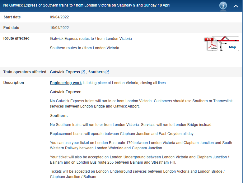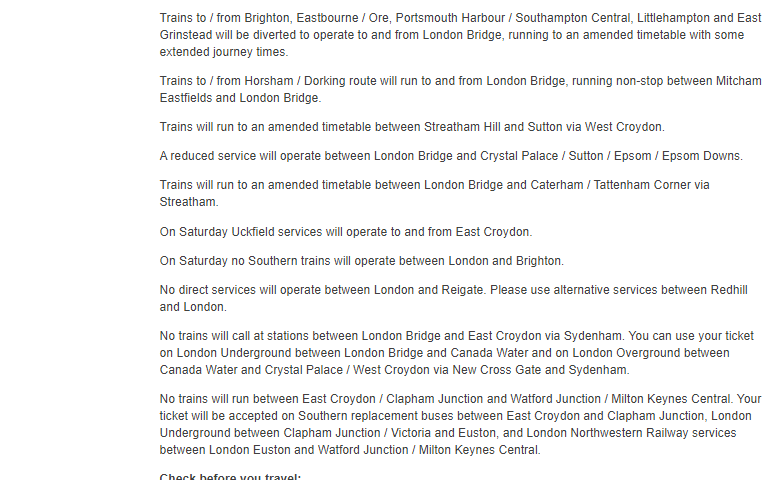 So as before when Southern Railways have been unable to operate any of their usual services into Victoria Station they will be operating many of the services to and from London Bridge instead. To accommodate these services they won’t be operating the London Bridge - East Croydon stopping service all weekend or the London Bridge - Crystal Palace stopping service on Sunday and obviously Saturday’s London Bridge - Victoria stopping service won’t be able to operate either.