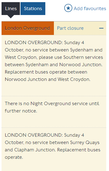 However for some inexplicable reason London Overground are not operating their Crystal Palace services as well!