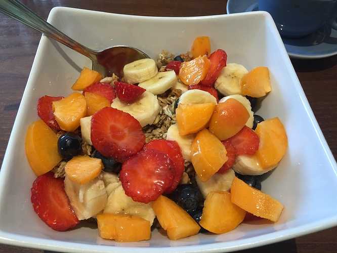 Granola with greek yogurt, honey and fruit