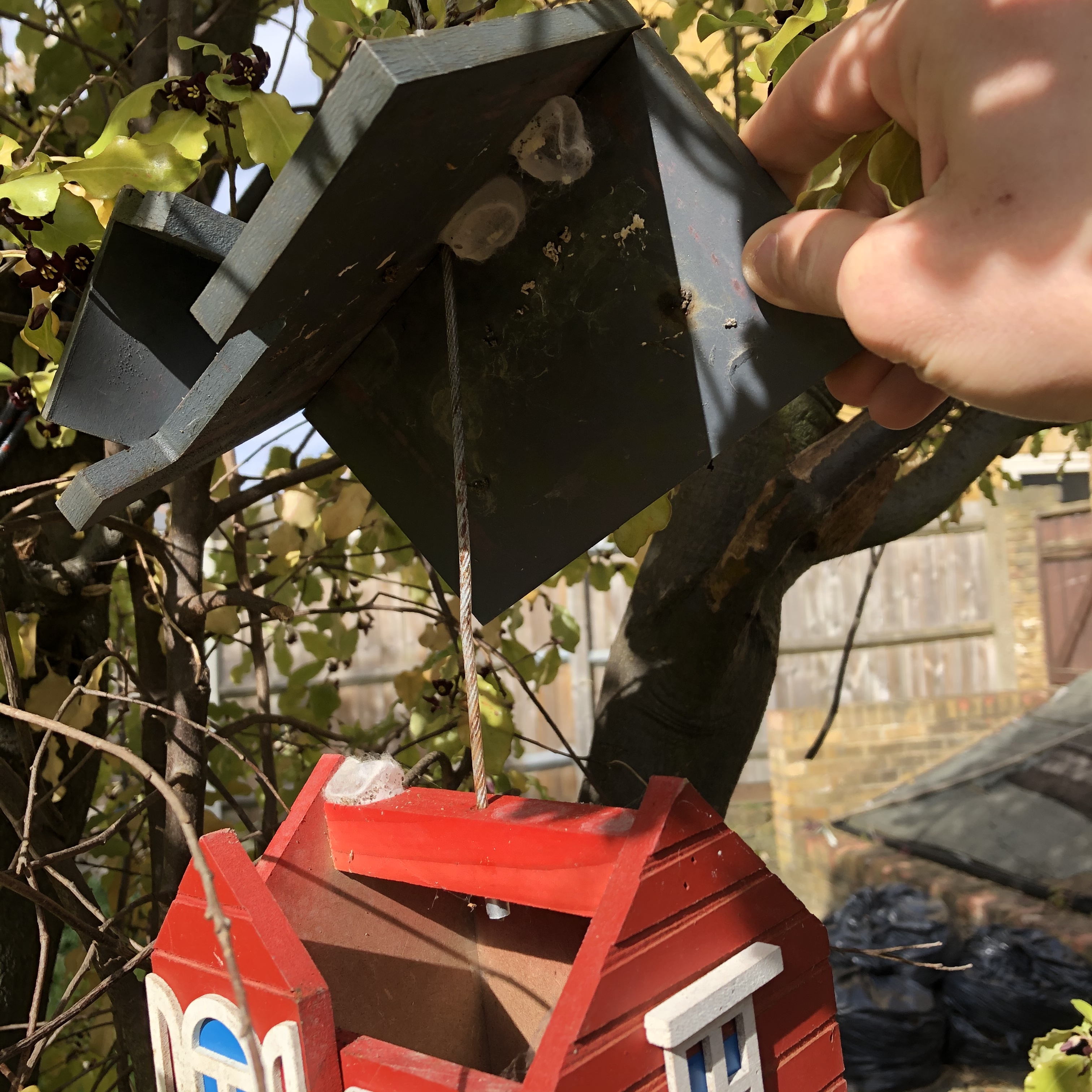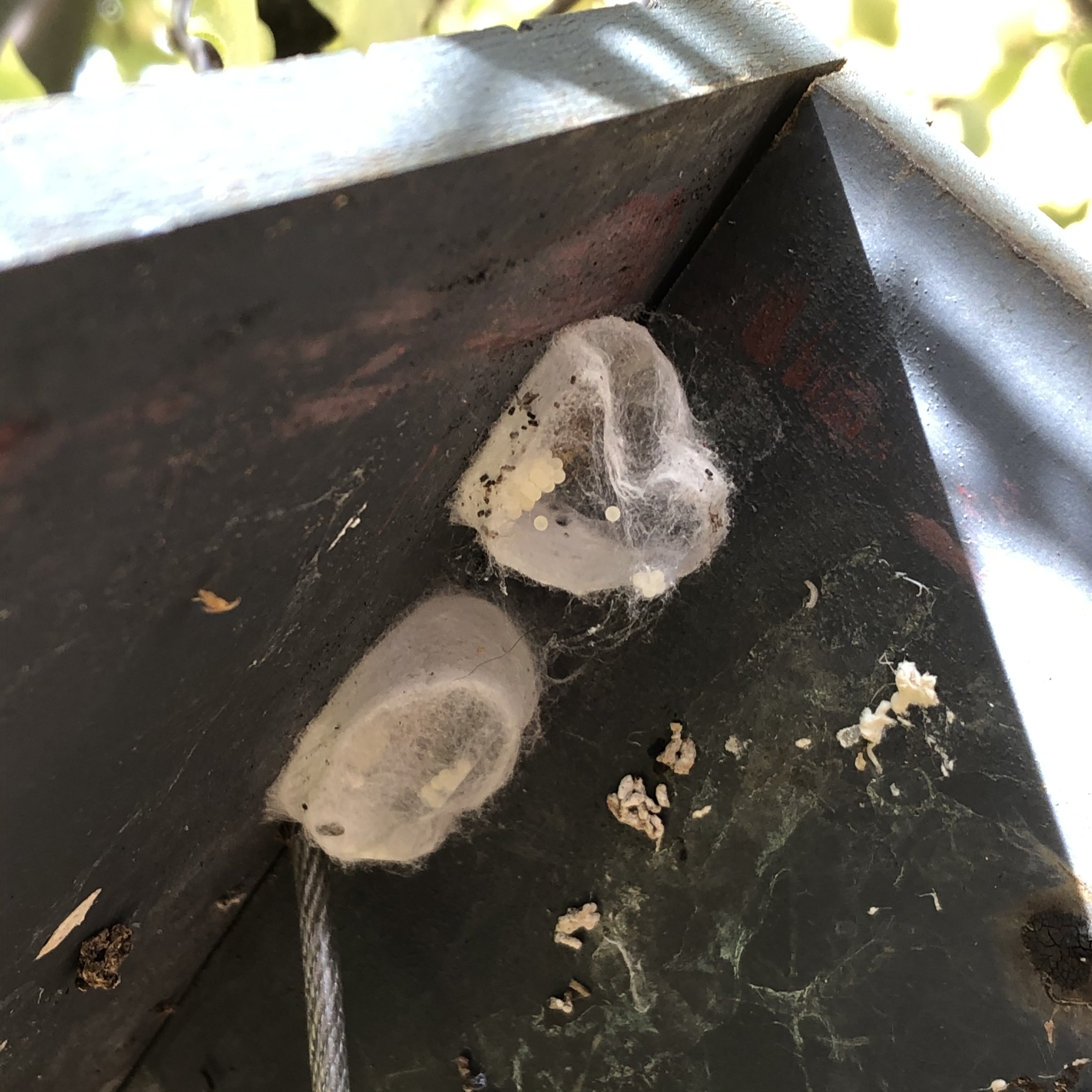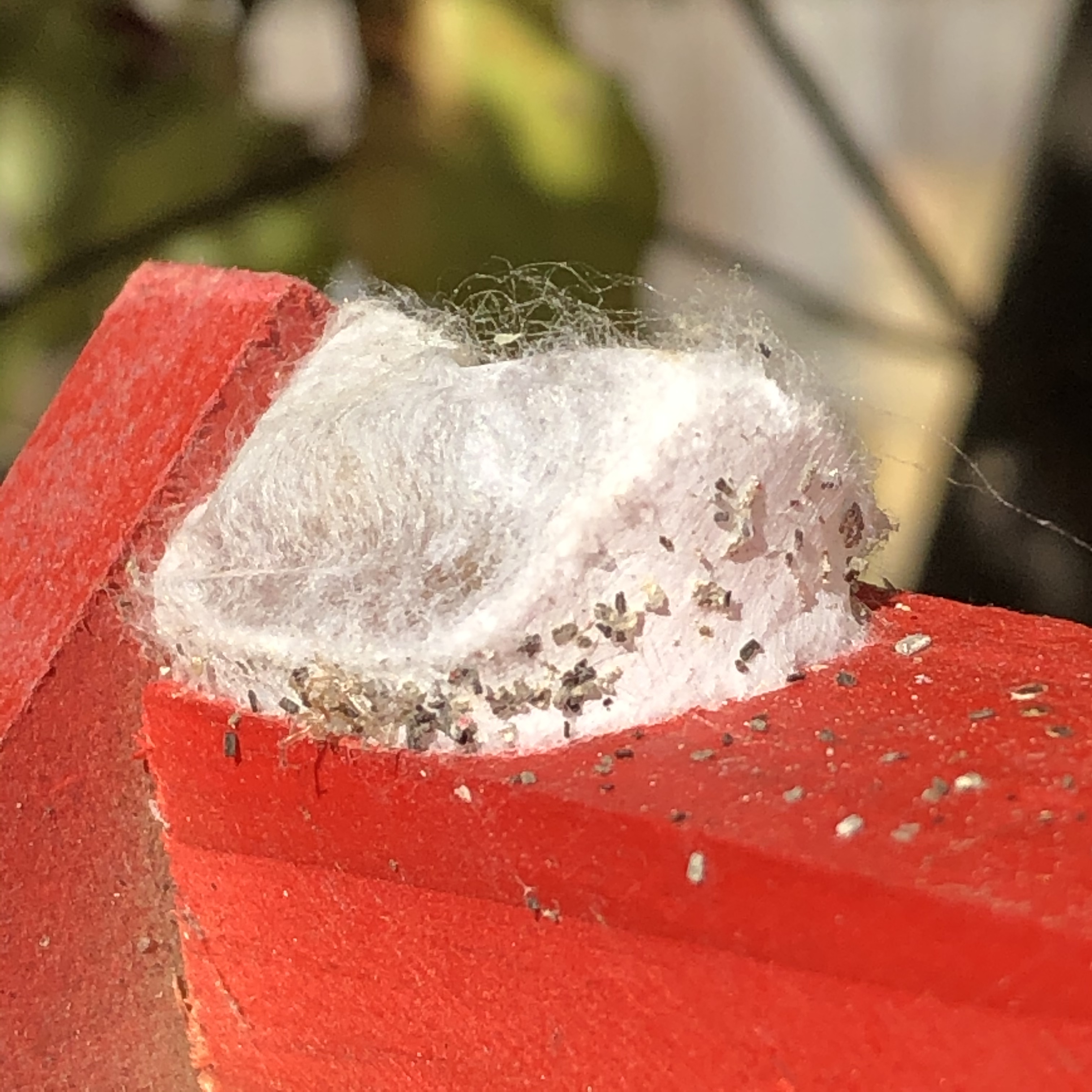 Filling up the bird feeder today. I came across these perfect little tents inside it, complete with a spider & it’s eggs.
