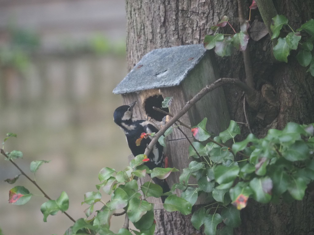 Came back in this morning and heard some knocking outside - thought either neighbours doing some DIY or the woodpecker was back around. It was the latter, who has decided to take over our blue tit nest box. The noise it was making the whole bigger- never seen that before!