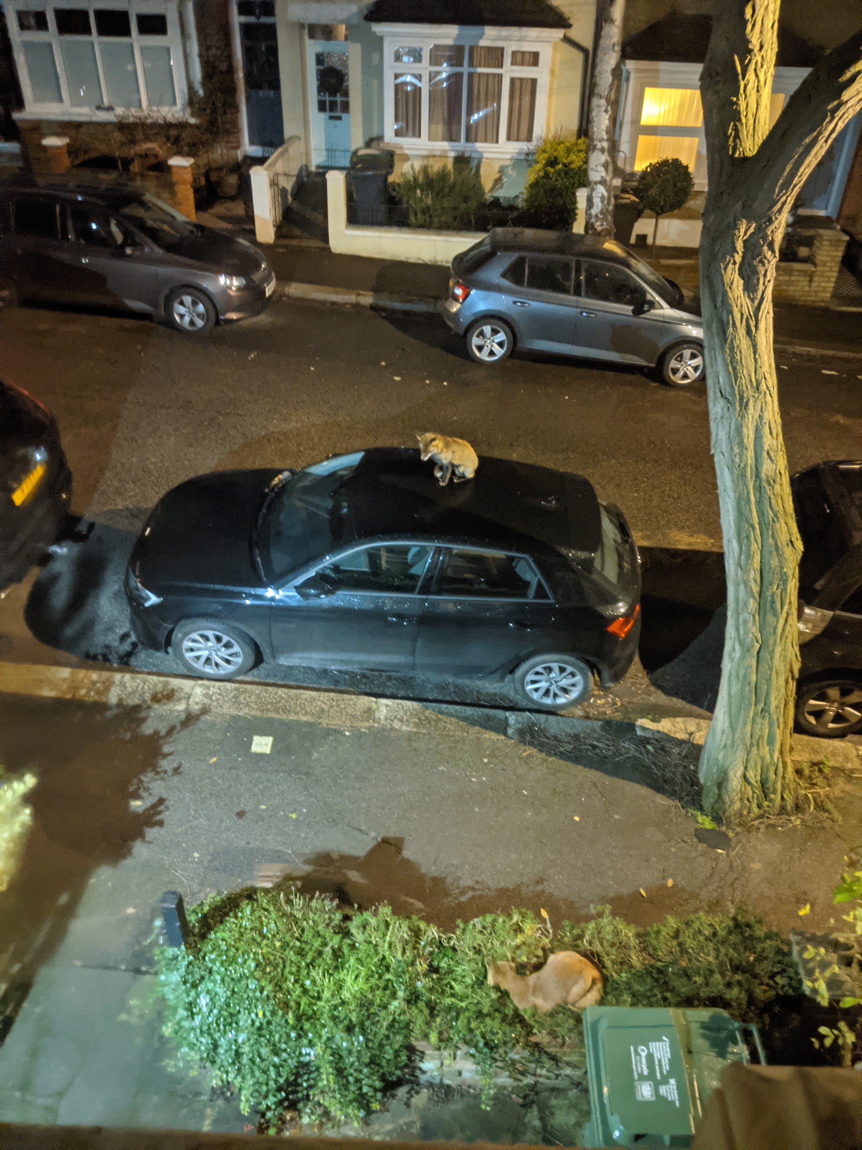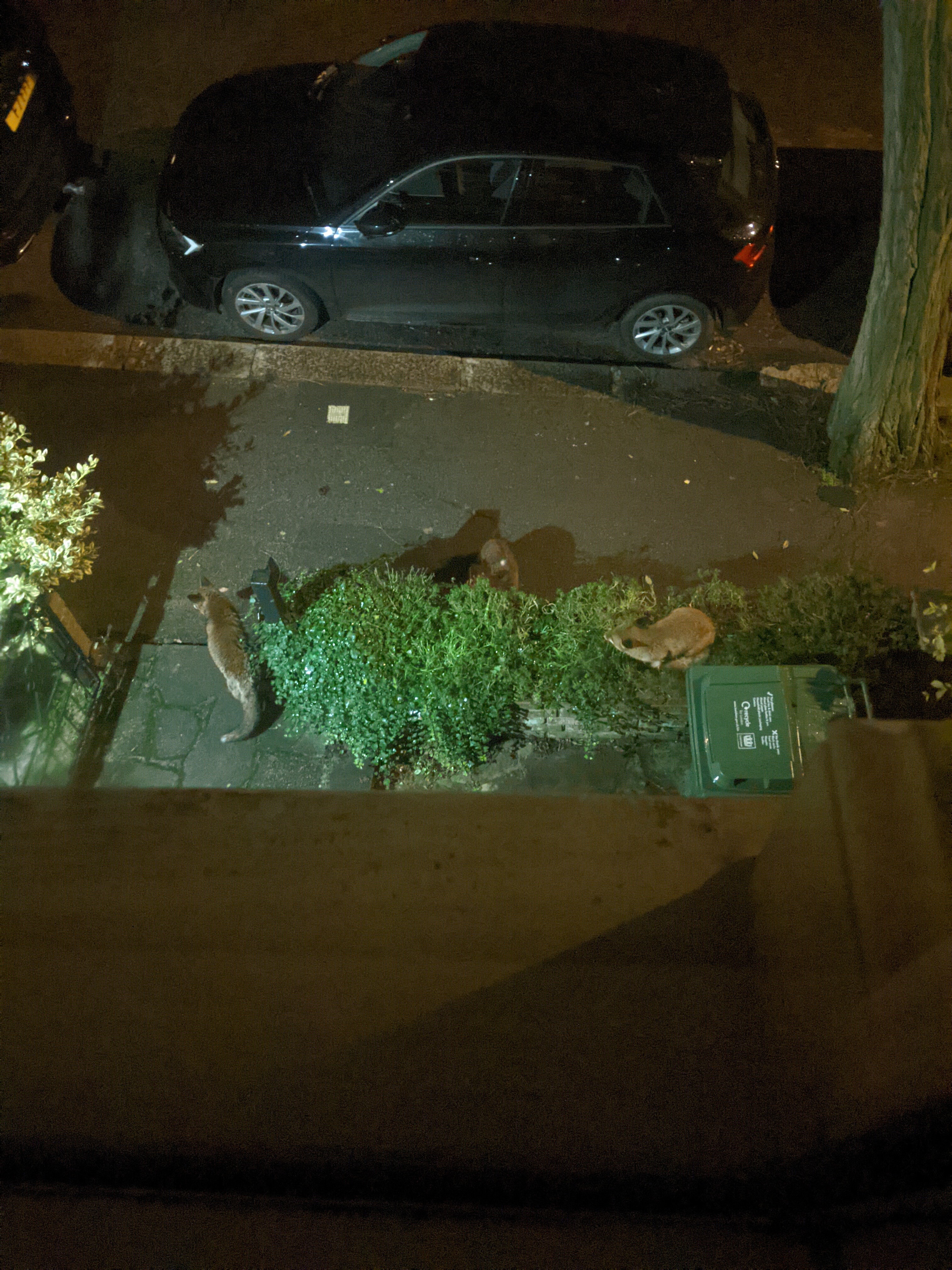 Had two foxes play-fighting/fighting in my front garden on HOP two nights ago, wonder if it was the same gang.