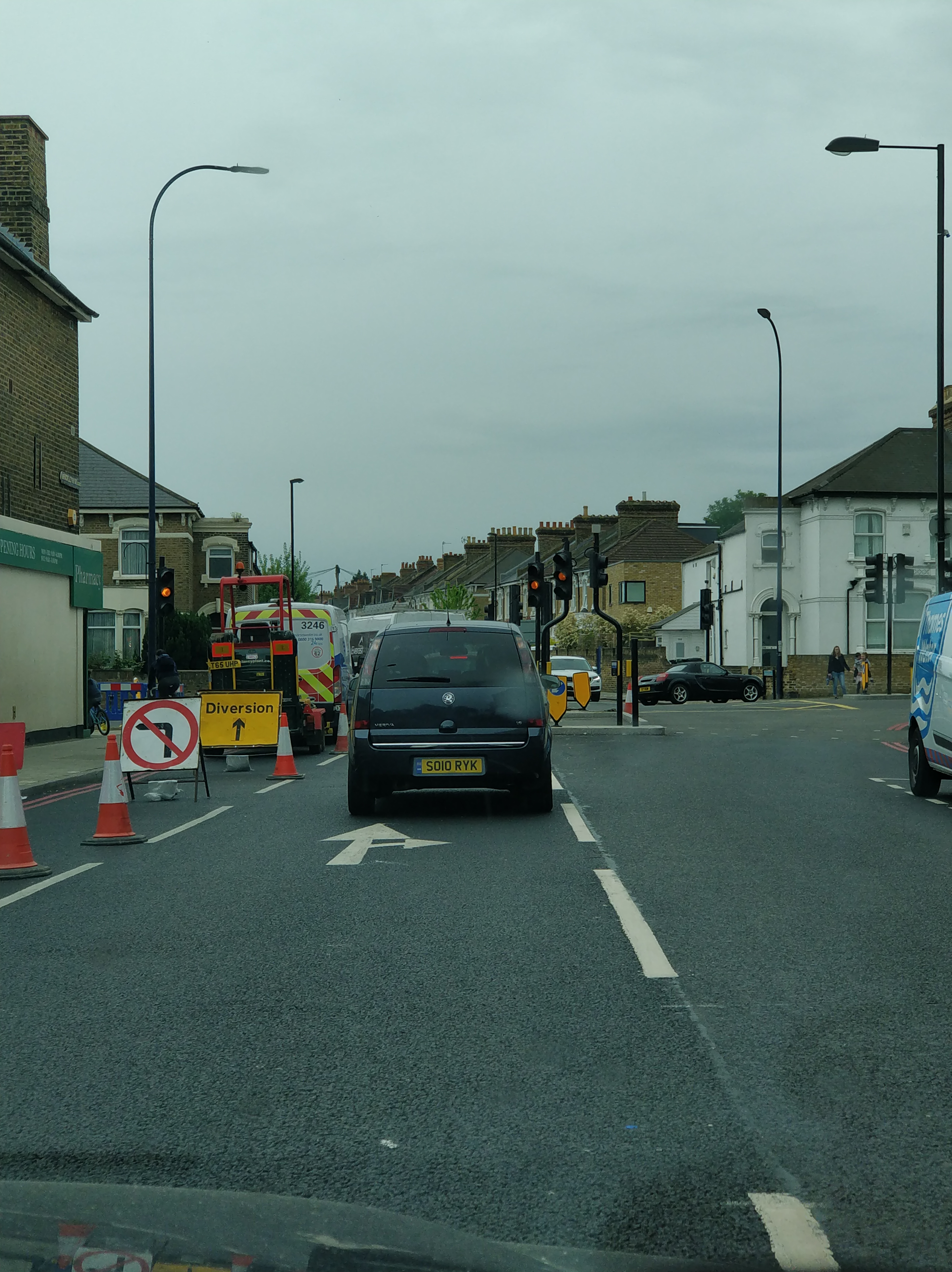 Brockley Rise backing up badly due to it being a single lane at the junction with Stansted. Workers doing an assessment of the road now, so looks like work will start soon. Assuming they were planning how to implement closures etc.
