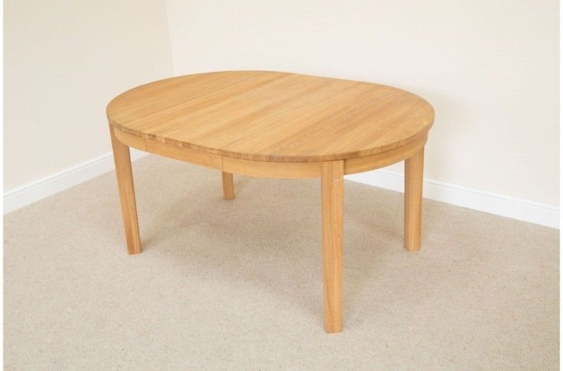 We have an old Ikea dining table, 115cm in diameter, with extendable leaves.