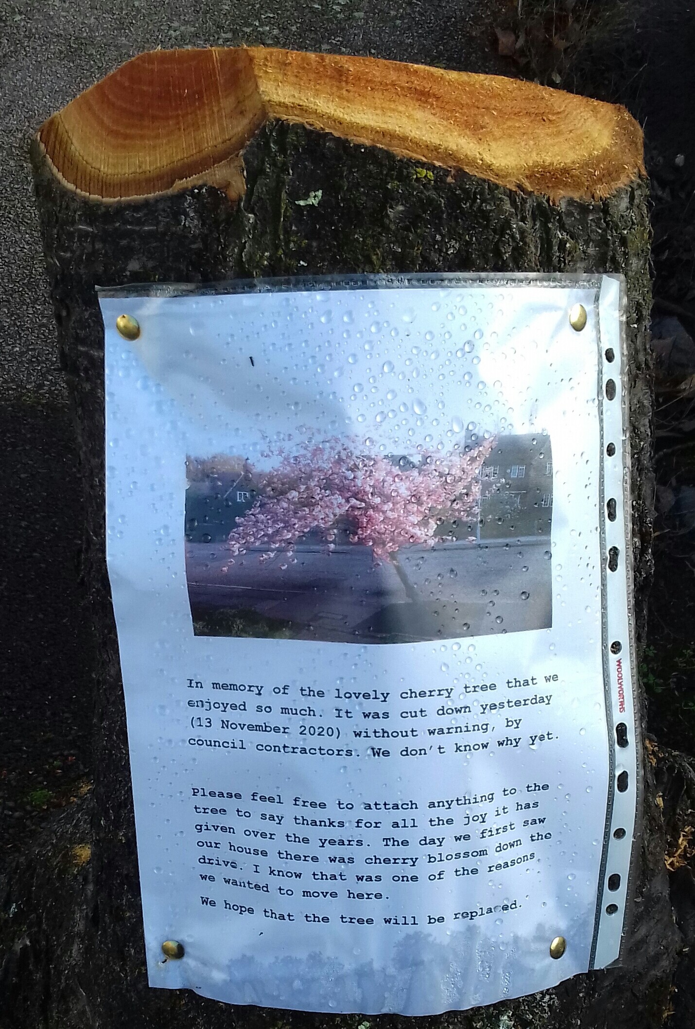 That’s awful , I love our local cherry trees too and would be truly saddened if this occurred on my road!