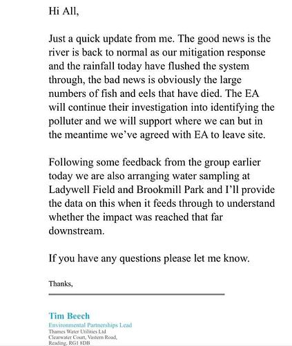 Although it’s not in SE23 I know a lot of local people visit the River Pool and use Riverview Walk and the Linear Park. The Friends of River Pool have posted on their Facebook site today that the river has been poisoned by a blue gel type substance from around Sainsburys Bridge which has killed many of the fish in the river. Thames Water and the Environment Agency are investigating but we are being warned to keep dogs and children out of the water downstream.