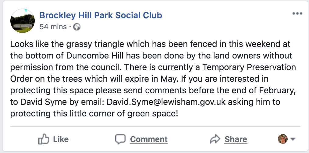 I happened to meet someone who works at the planning department for Lewisham the other day, as I was walking past the triangle. She told me that the trees were only temporarily protected but anyone could write directly to planning@lewisham.gov.uk to show support and request for the protection of the trees to become permanent.
