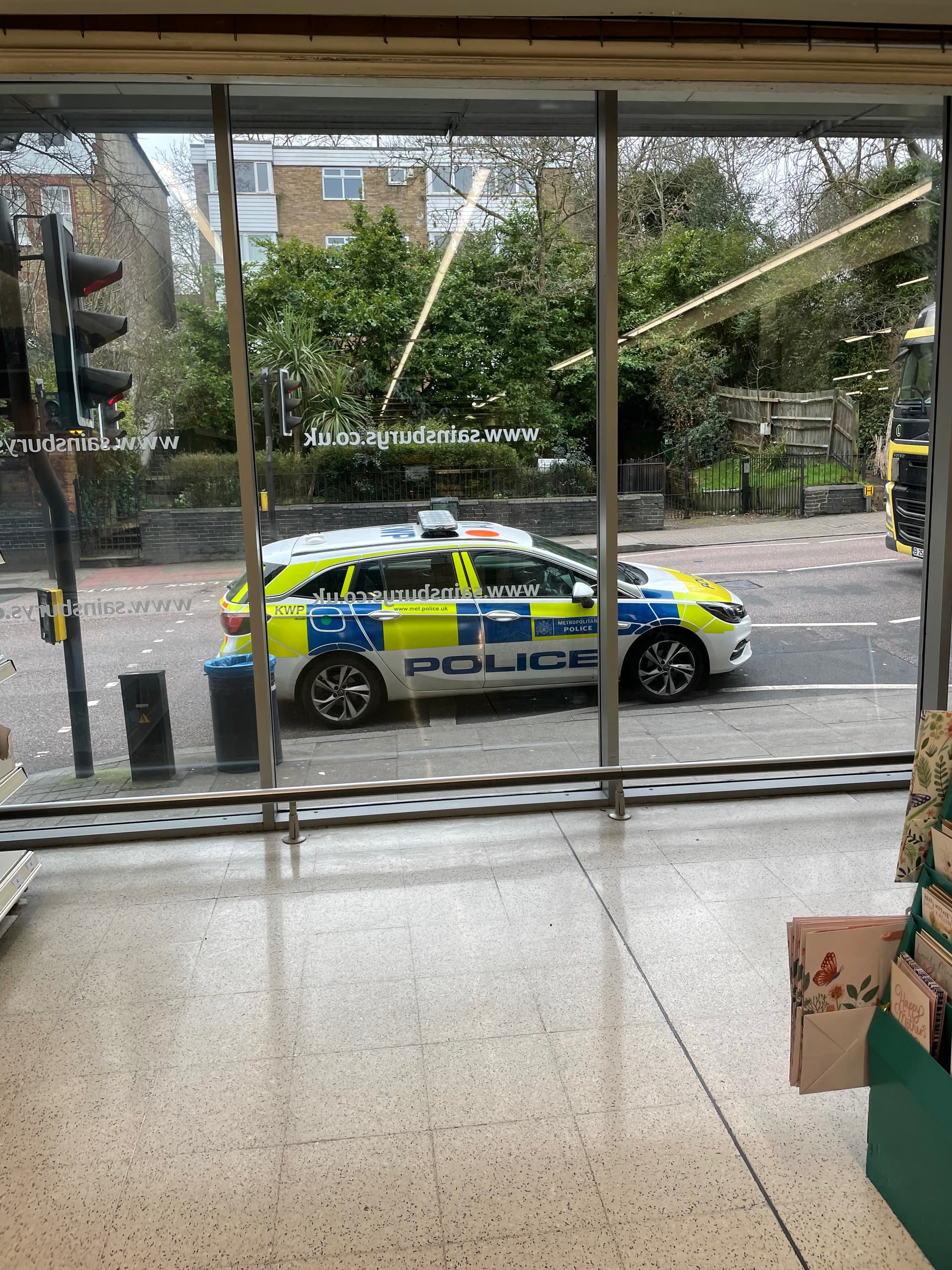 I know these officers were probably taking an advantage of a rare quiet moment. But I don’t think it’s ok to leave a police car on zebra’s, in a bus lane and with lights on when they’re not responding to an incident. Instead they’re buying cigarettes and sandwiches, which really doesn’t help the Mets current pr image. Kindly pull into a side street or use the car park like the rest of us.