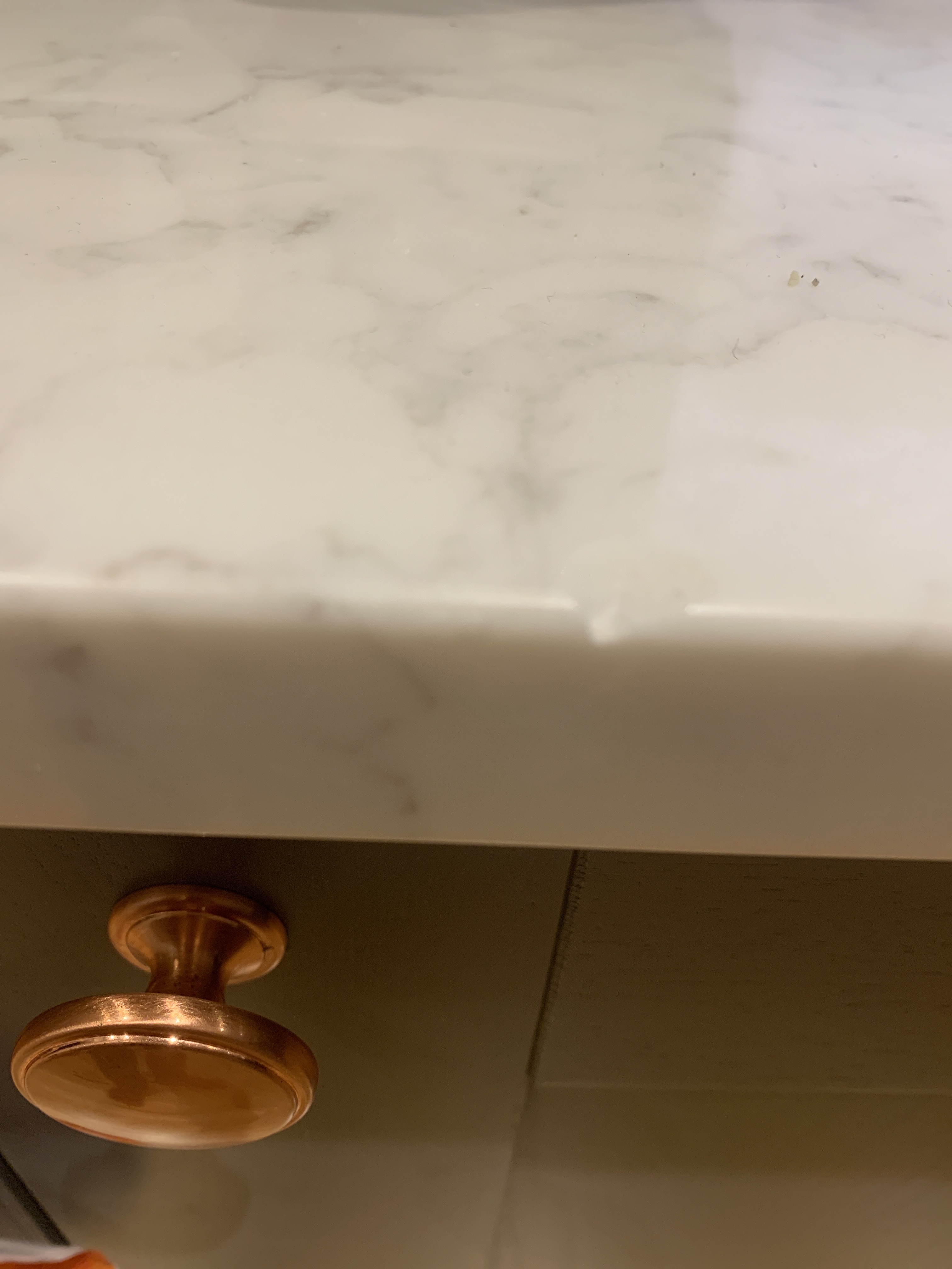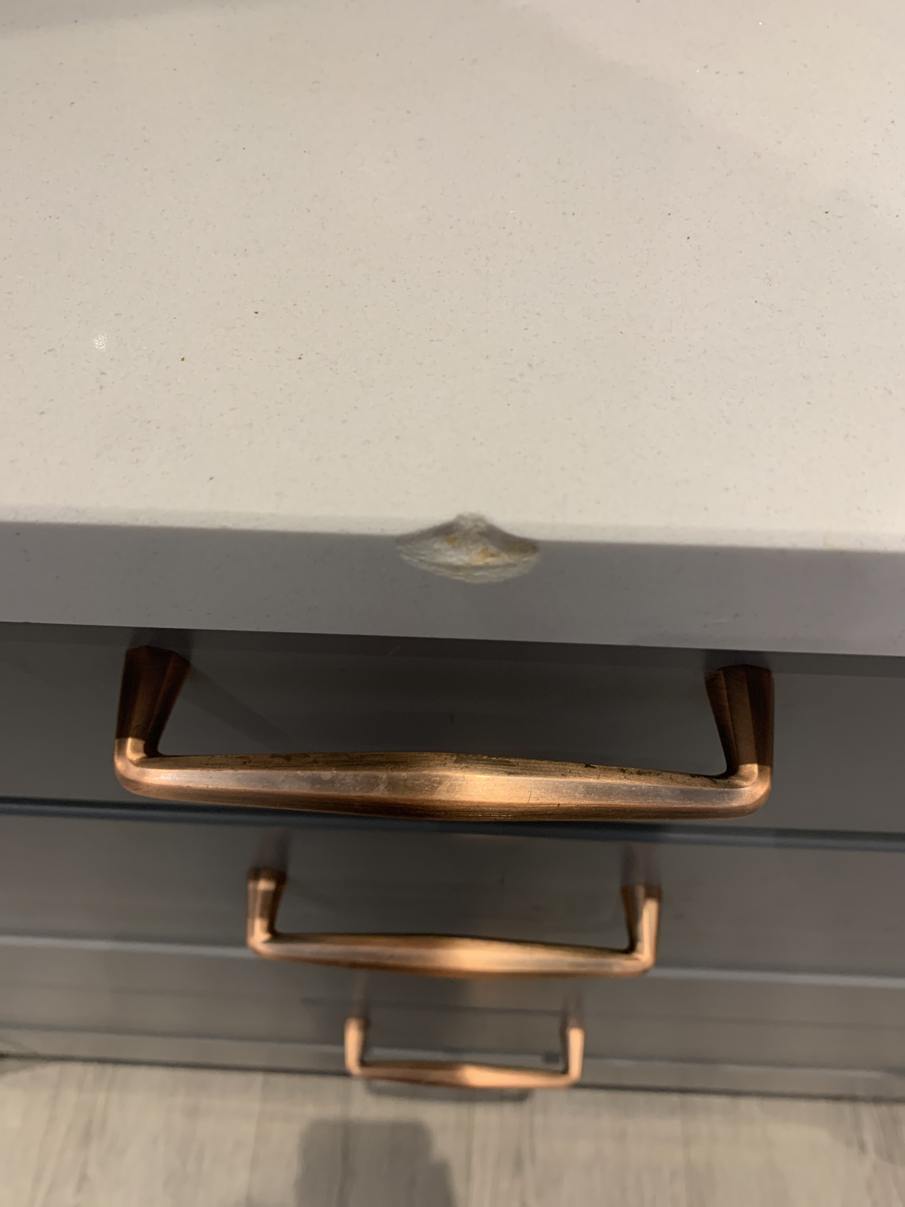 In a weird coincidence, we have a similar edge chip, but smaller on our quartz worktop which we obtained from Imperial Marble &Granite in SE6. Apparently they can fix it for £60 which we’re happy to pay given it’s newish.