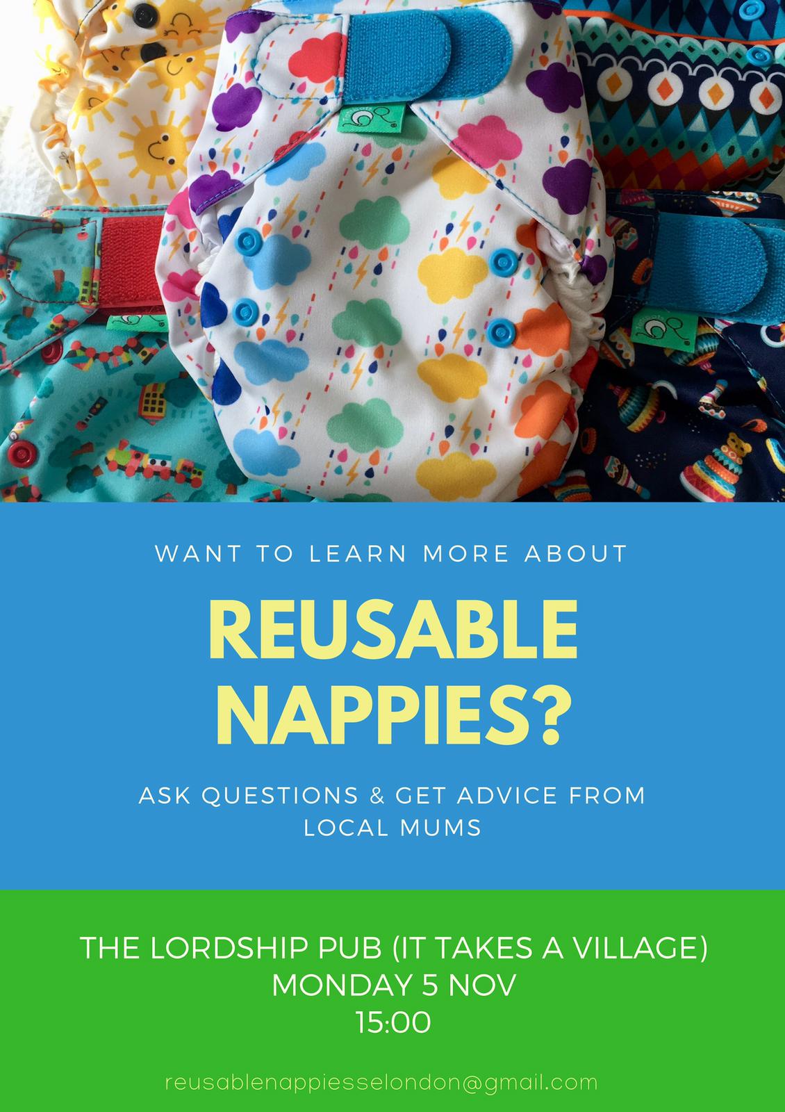 Interested in reusable nappies but don’t know where to start? Need advice? Nappy Neighbours, a group of local mums who want to spread the nappy love are joining Takes A Village during their Mother Cuppa sessions to give advice and chat nappies. Come along this Monday the 5th of November, at 15:00, at The Lordship Pub in East Dulwich. Takes A Village @mother_cuppa