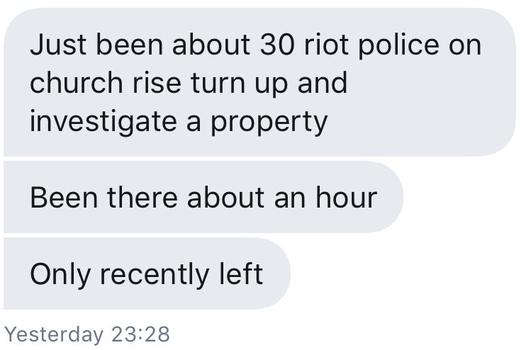 Riot police on Church Rise?