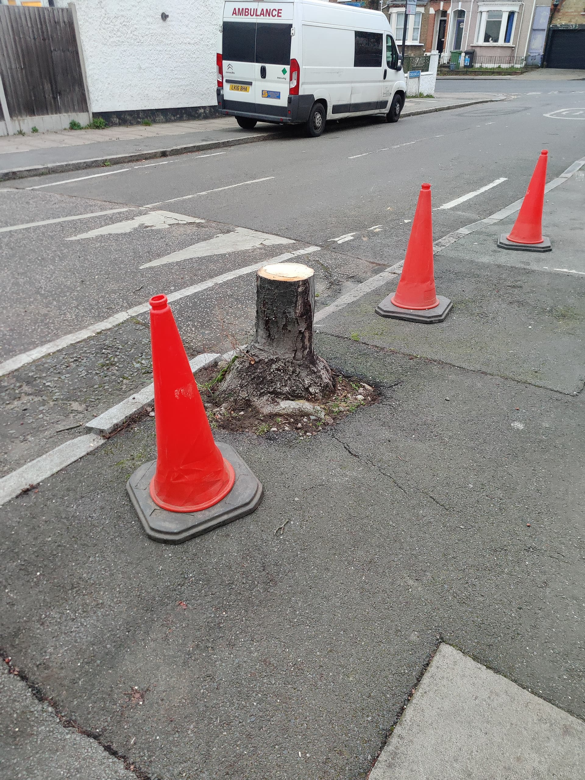Seems crazy if is for cables that they can’t just go further back on pavement. So many years of growing plus they help with air pollution. Shame they’ve totally gone bar the stump.