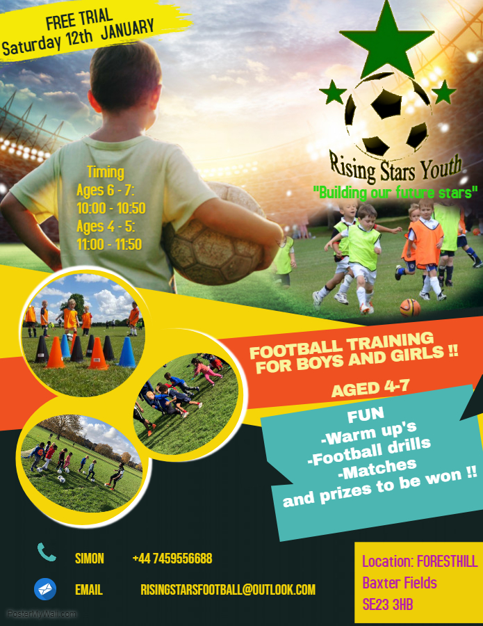 My name is Simon, i’m a football coach and owner of Rising stars youth football training, on Saturday the 12th of January we will be launching football training sessions for boys and girls aged 4-7 at ForestHill Baxter field park.