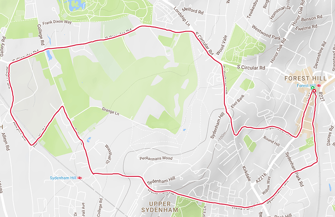I hope the new shoes arrive soon @MarkyMark! This coming weekend sounds good. I went out for a run on Monday anyway - 7.5kms (with lots of opportunities to extend (to either Crystal Palace or Dulwich) around the route