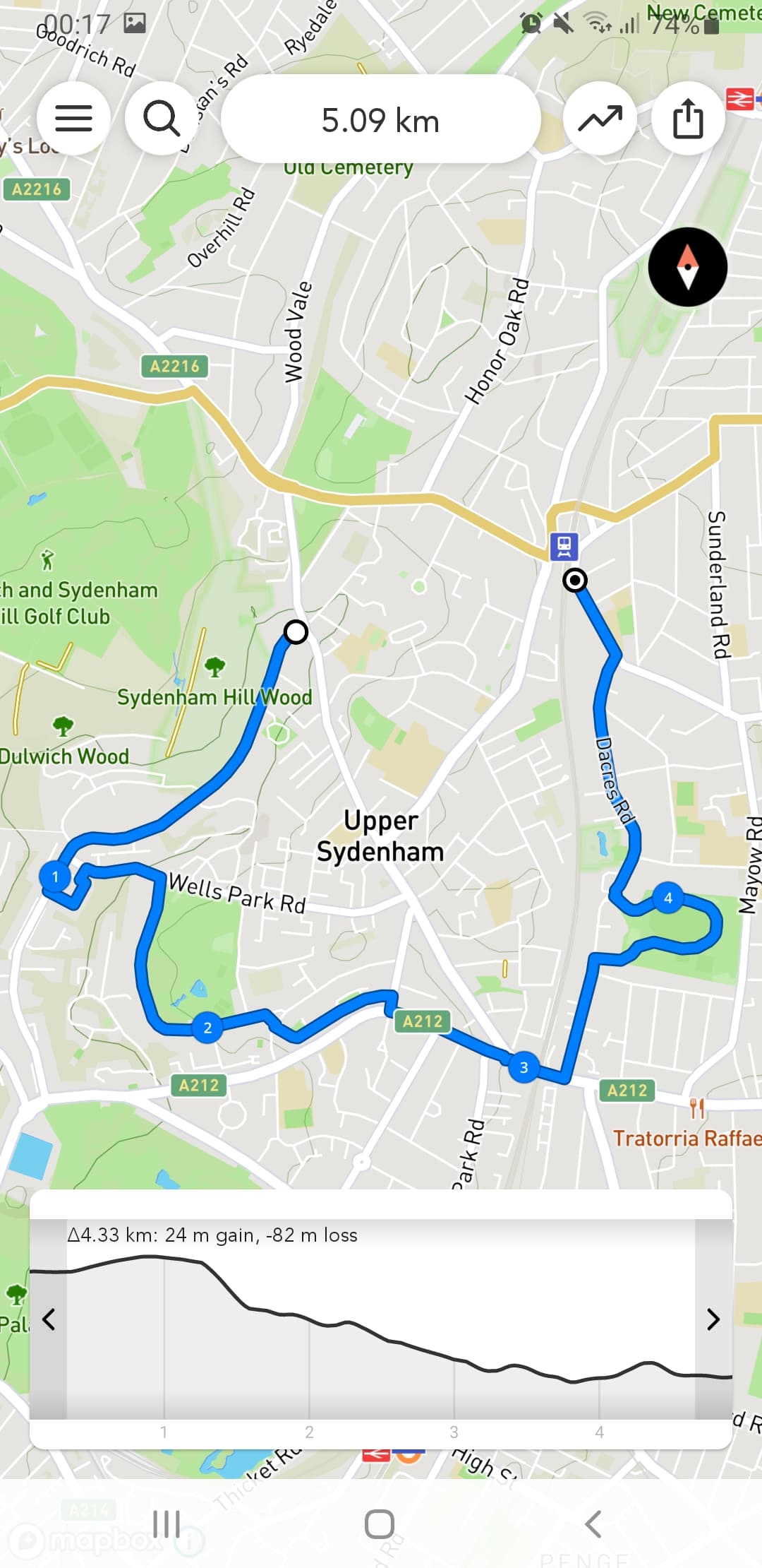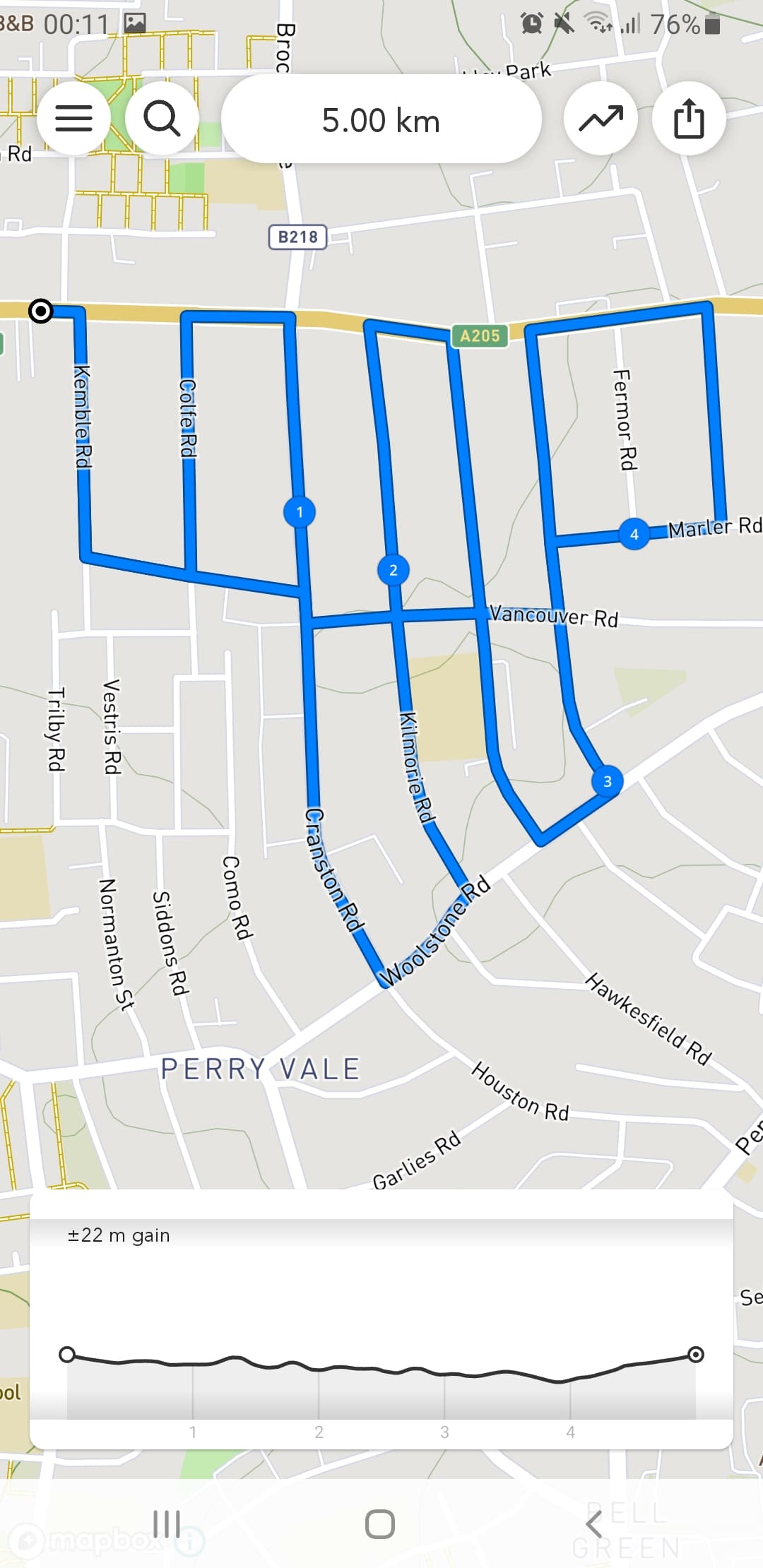 I’m not a very good runner and hate hills, even the slightest of hills, so I have used an app called footpath to design some 5k runs that are mainly flat and avoid too many crossroads.