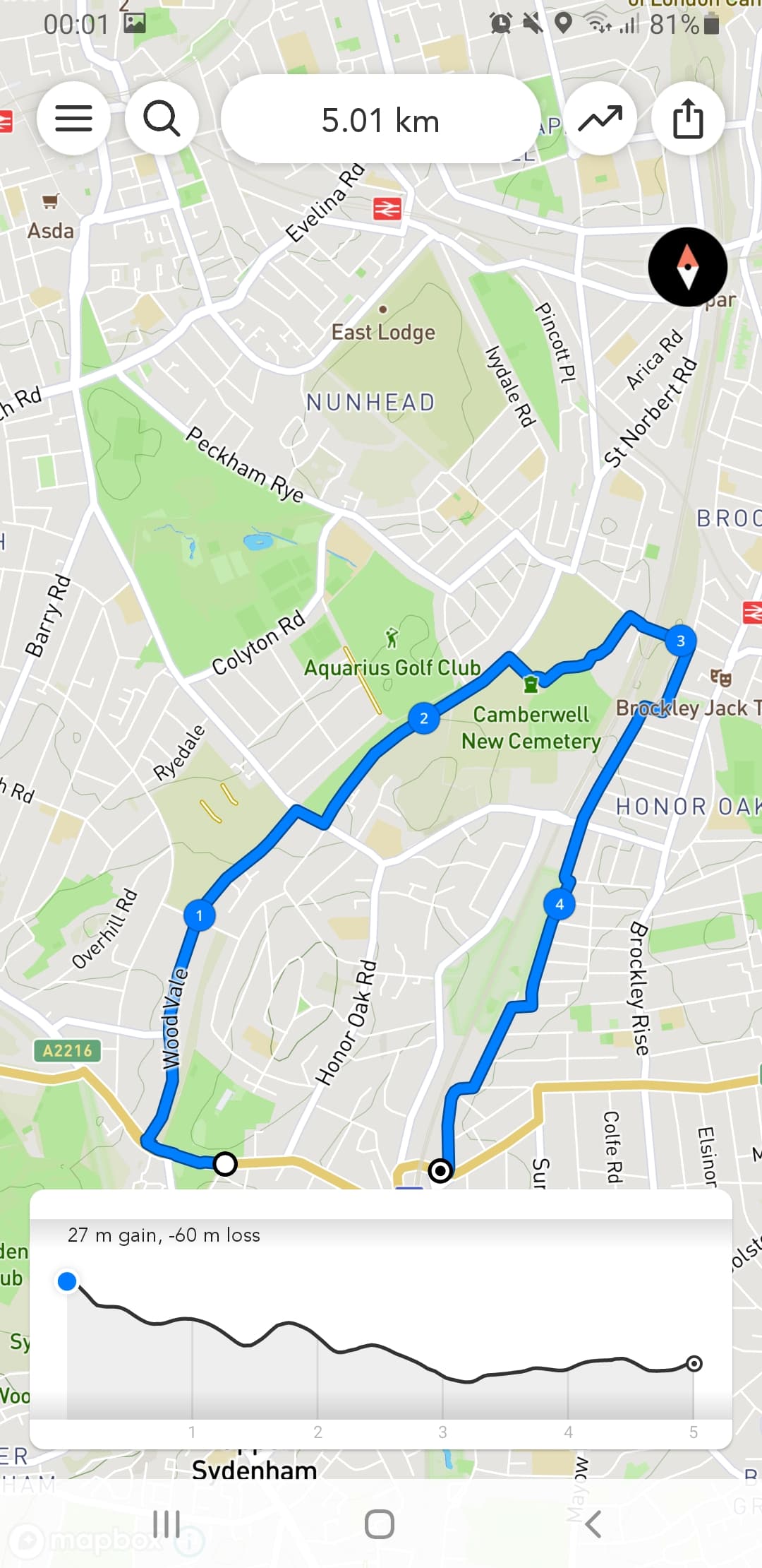 I’ve got a 10K route that is currently expanding as I’m going for 16 at the moment. Ladywell Fields - Waterlink Way to Lewisham then on to Deptford Creek - along the river until you run out of path then down through New Cross/Deptford to Brockley through the Mews. This can be extended with loops of Brockley Cemetery as per pic. I also run up to Blackheath from Lewisham up Lewisham Hill and then down through Greenwich Park to expand it.