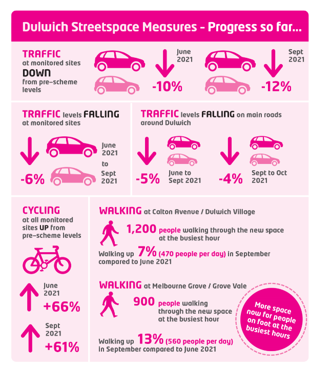 The local elections in both Lewisham and Southwark will be the deciding factor in whether these schemes continue. I fear if Labour get back in in Southwark, they’ll extend the LTN to cover streets on the eastern side of Lordship Lane bordering Forest Hill. Already Underhill Road is a nightmare in the peaks, along with the London Road end of Wood Vale as cars are using them as alternative routes to avoid the traffic on Lordship Lane/London Road.