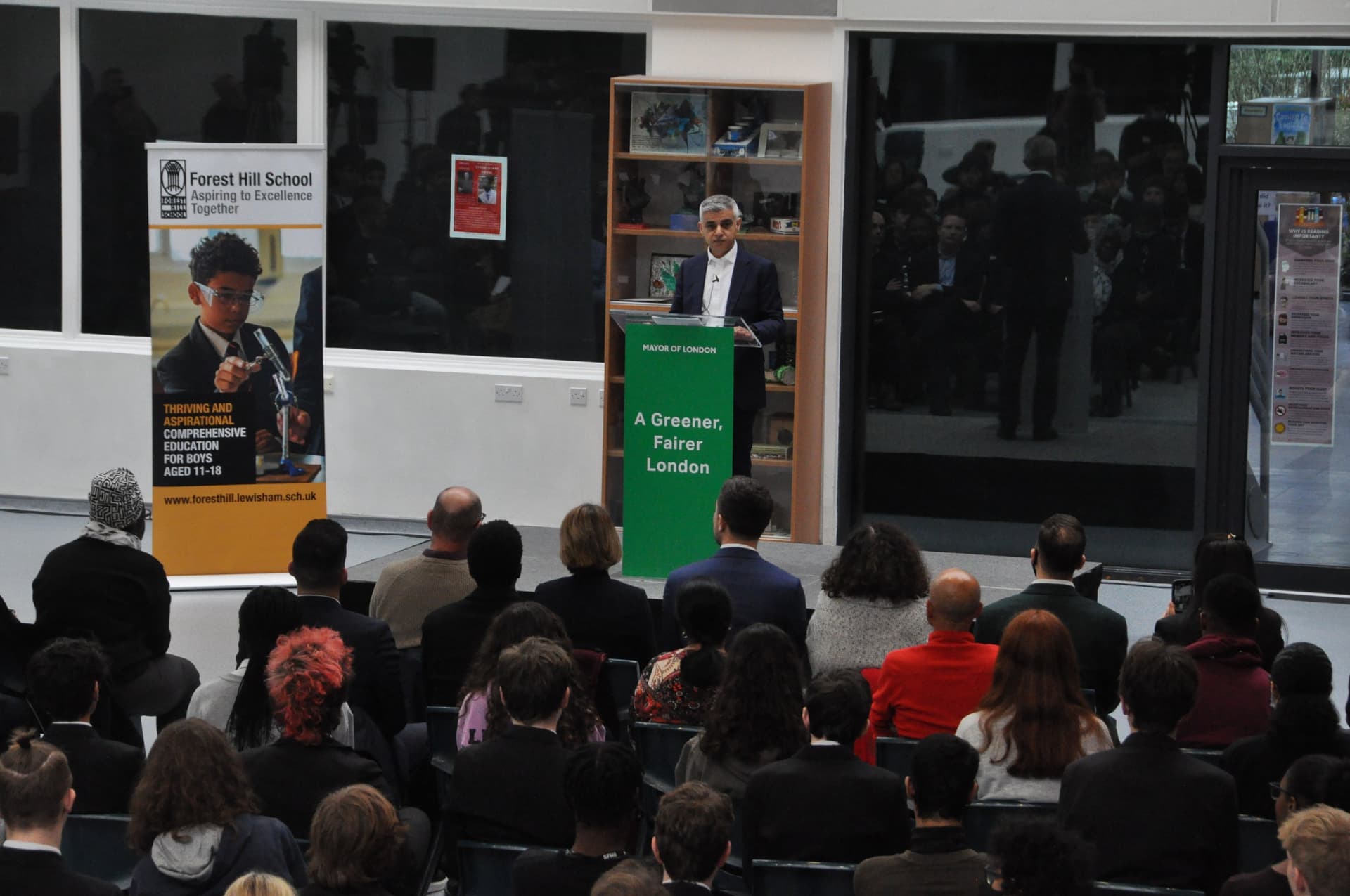 The announcement he makes is that the ULEZ will expand to cover all Greater London by the end of next year. It’s also being covered in the press (though not referencing Forest Hill School):