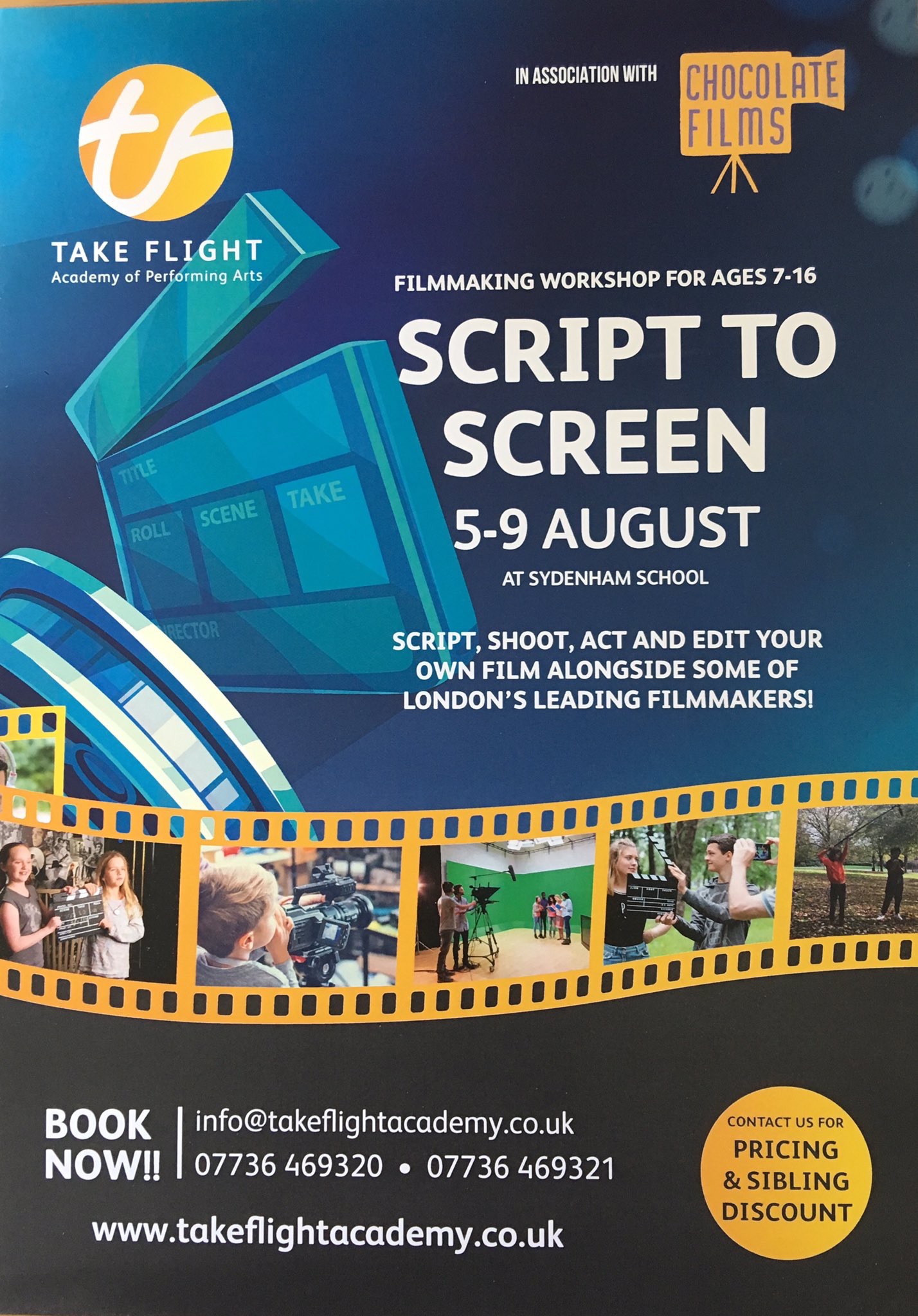 Take Flight Academy are thrilled to be working in association with CHOCOLATE FILMS, to present “SCRIPT TO SCREEN”, in which your child/teen will learn how to SCRIPT, ACT, SHOOT and EDIT their own movie, alongside some of London’s leading filmmakers!