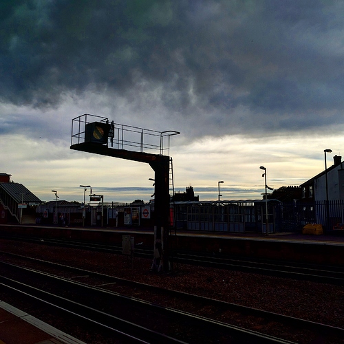 On the theme of rain. Waiting at the station this morning, with the skies making its intentions perfectly clear.