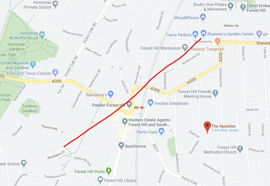 I have spent more time than is reasonable trying to pinpoint on Google Earth where you took yours from (to the point where I now hate myself). But… is Hilly Fields Park in the right ballpark? Assuming that’s the church next to the fire station on Lewisham High Street.