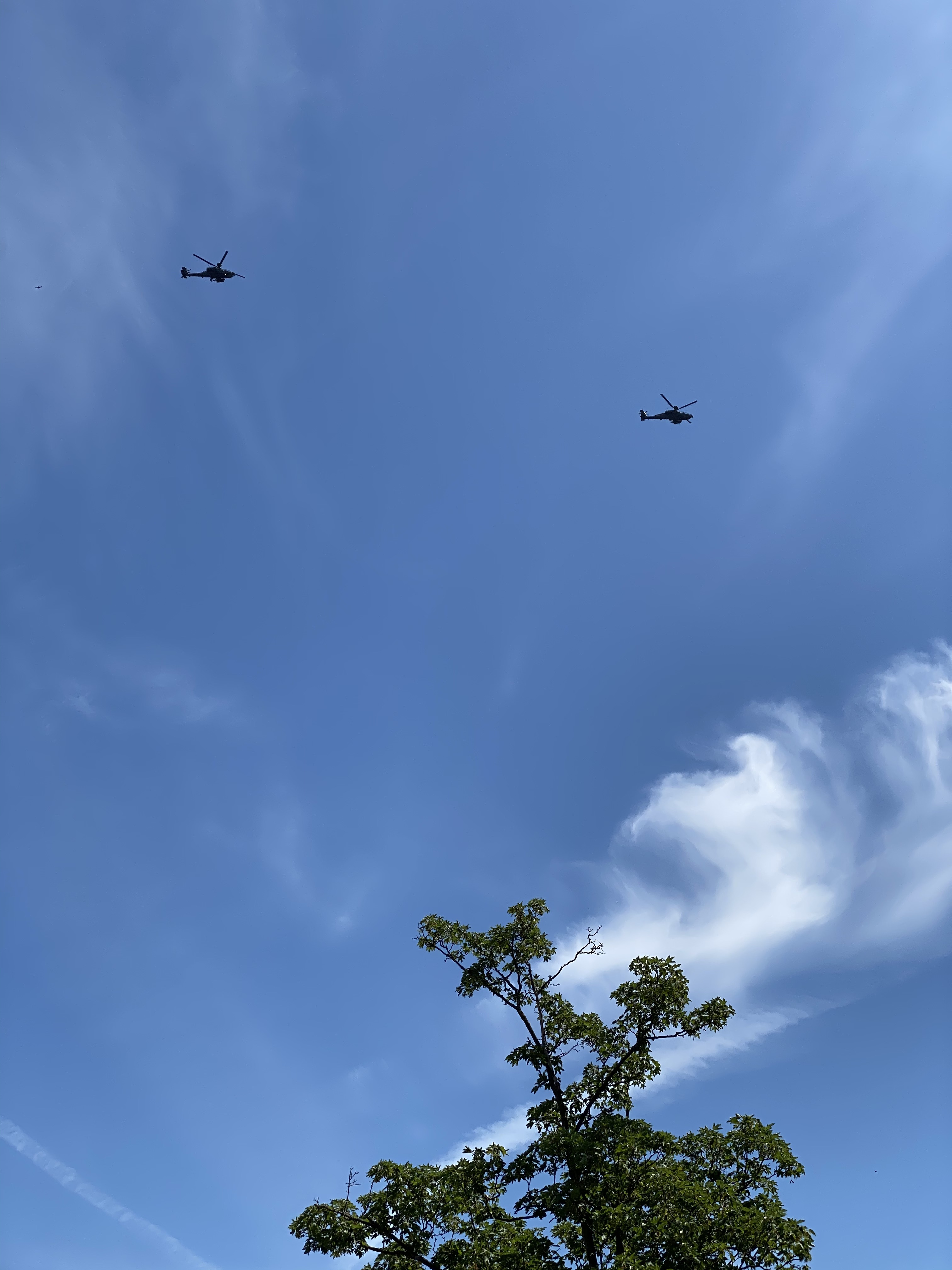 I wondered what the helicopters that I heard were as I could tell they had a different sound to the police and air ambulance helicopters we hear more regularly and the chinooks that go over from time to time. By the time I got to a window next door’s large tree blocked the view of them!