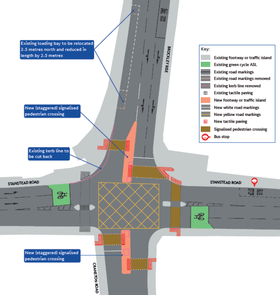 Going through the junction this morning at about 10:30 there was a considerable tailback waiting to exit Cranston Road. I counted the timings on the lights - only 10 seconds compared with about 20 in the opposite direction. Once I got onto Brockley Rise there were a lot of pinch points caused by the workmen’ lorrys and buses coming the other way.