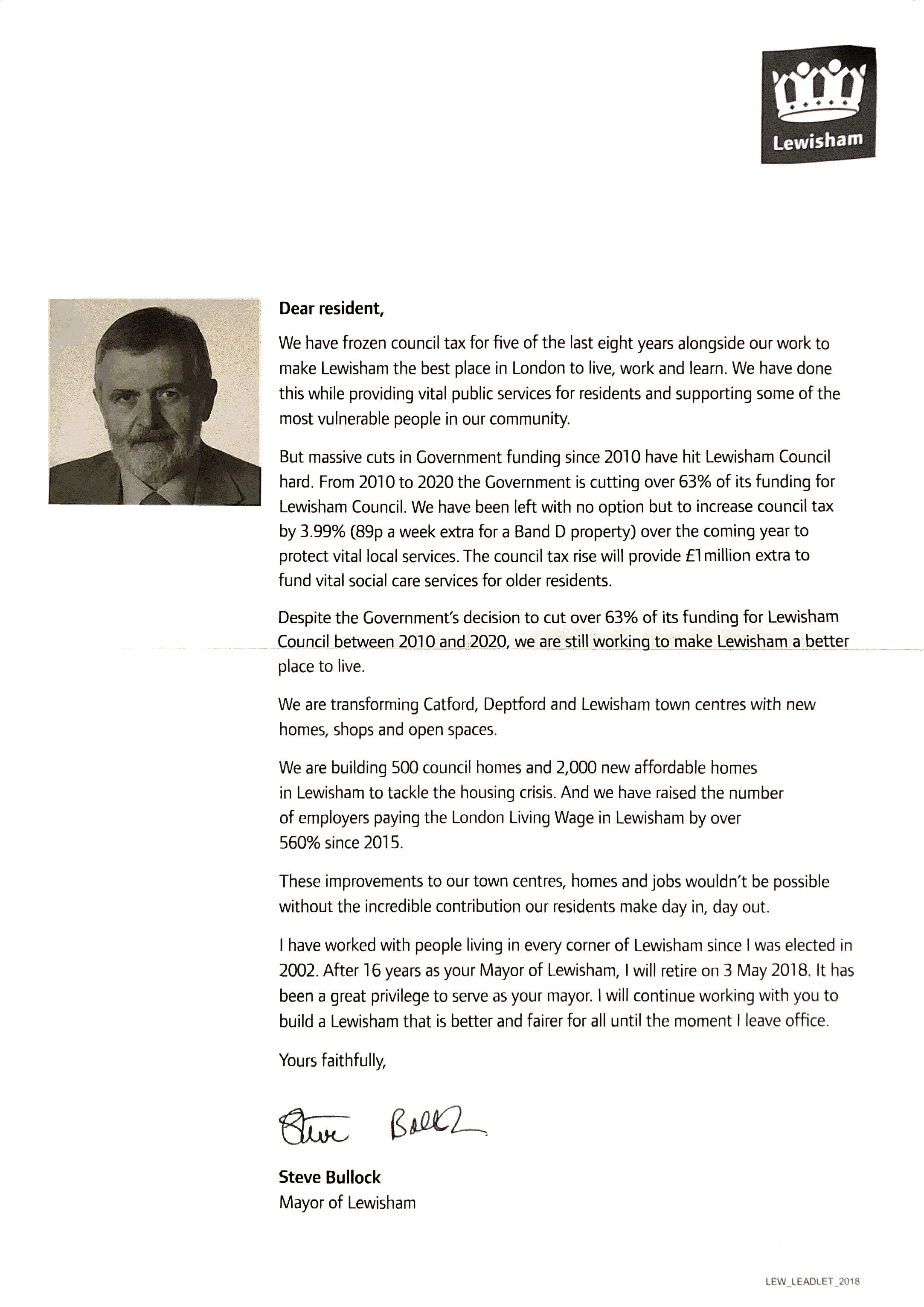 - Takes credit for the regeneration projects and housebuilding, which are central government initiatives, with tens of millions of extra funding coming from central government.