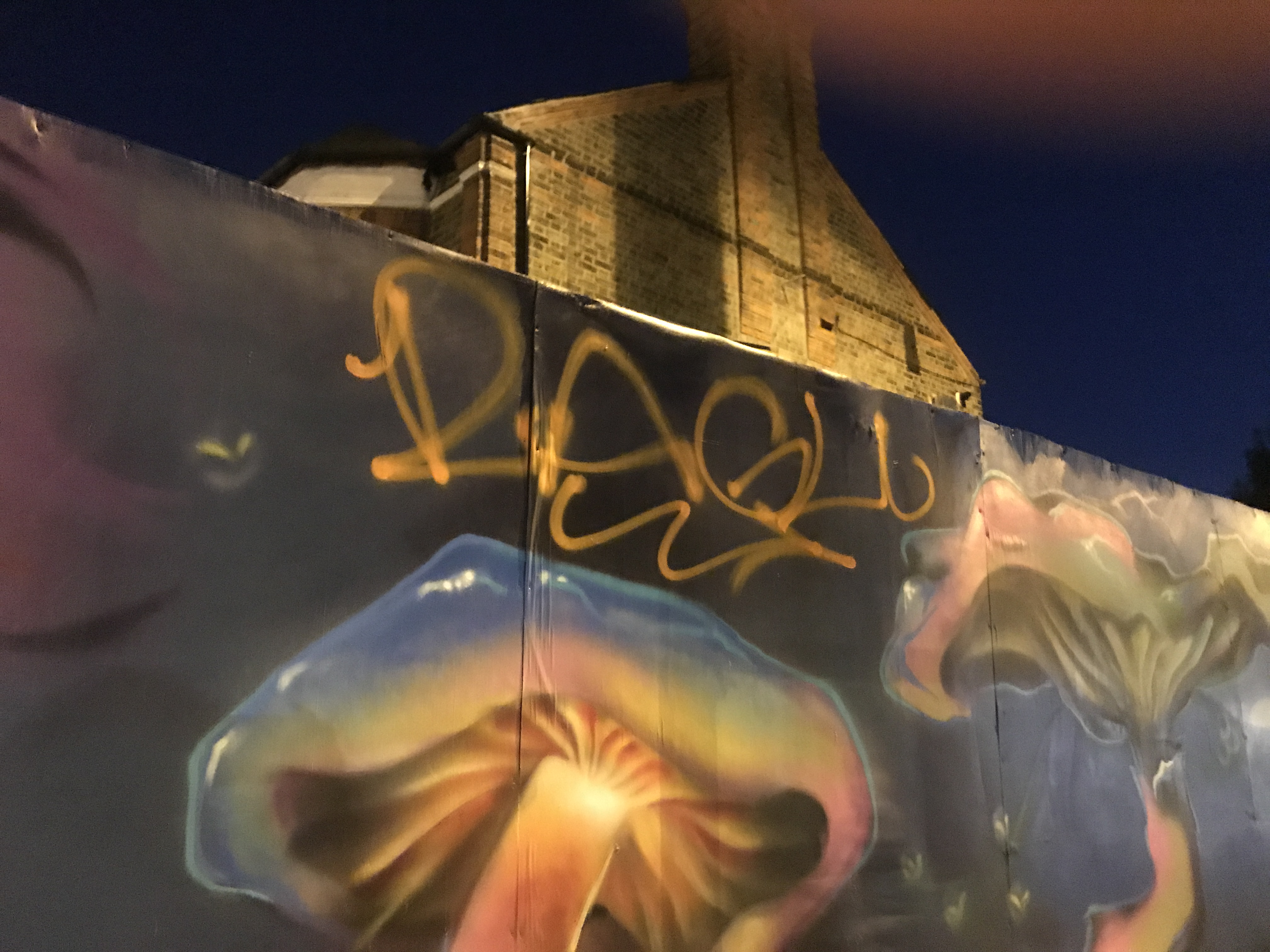 Well that didn’t take long. Some idiot has already defaced our lovely new artwork.