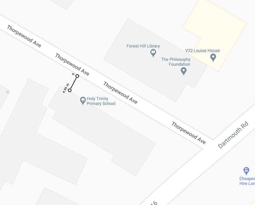 I have illustrated below the distance of classrooms in both Holy Trinity and Eliot Bank to Thorpewood Avenue. HT classrooms are 5 metres from the road while EB classrooms are 58 metres from the road.