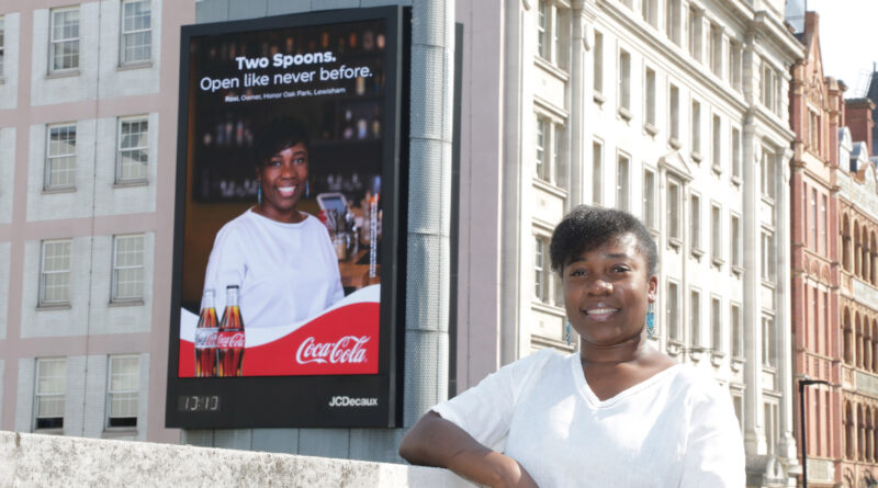 Rosy Garsi, owner of Two Spoons, a high street spot in Honor Oak Park, is being featured on billboards across the country as part of the Open Like Never Before campaign.