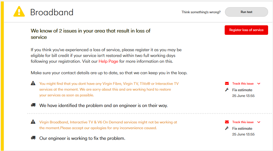 I have to say, I am generally quite happy with Virgin. Their cable TV is okay, Sky’s offering is better but we went with Virgin initially because it was already cabled to the house when we bought it and it had by far the best speeds available for our area (still does). The internet is usually excellent, apart from the very odd problem (like now). I do know that not everyone has a similar experience with their internet…