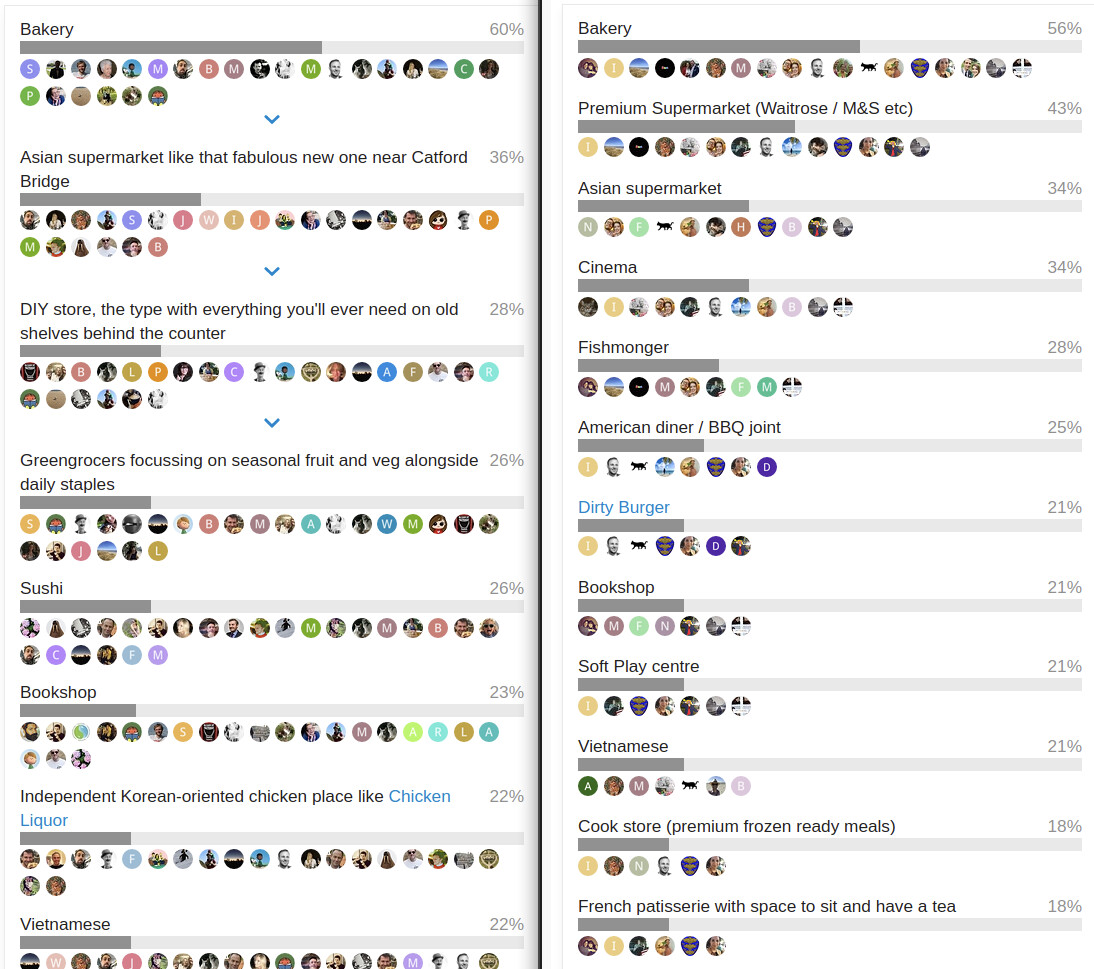 When creating this poll I copied the 2017 poll and added some of the suggestions mentioned in the comments that followed it (premium supermarkets, post office, Japanese Kaiten etc).