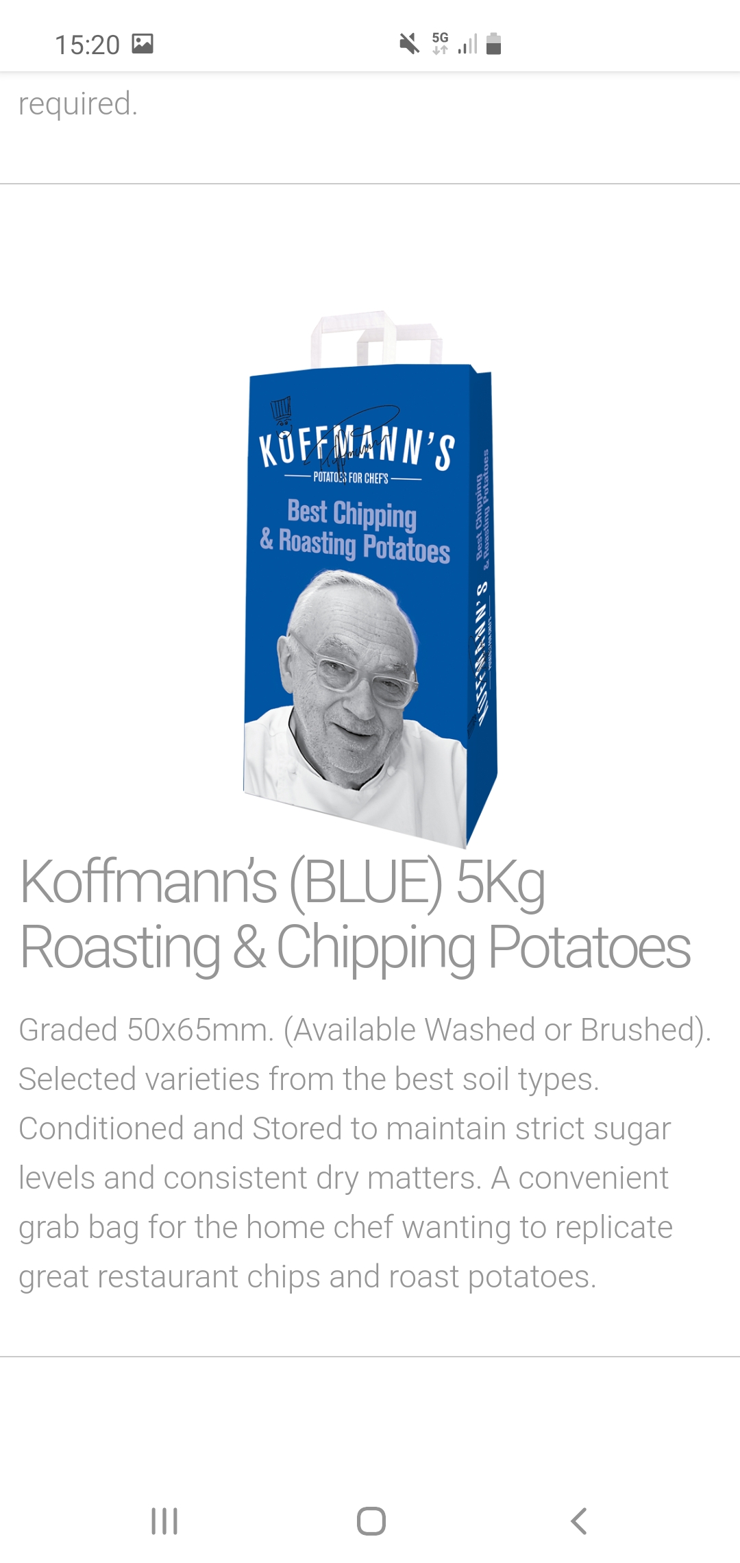 I like Koffman’s potatoes, in the blue bag. These are great, but on my last couple of purchases the supplier (Wellocks at Home) sent the red bag instead, which was a different variety and produced soggy chips.
