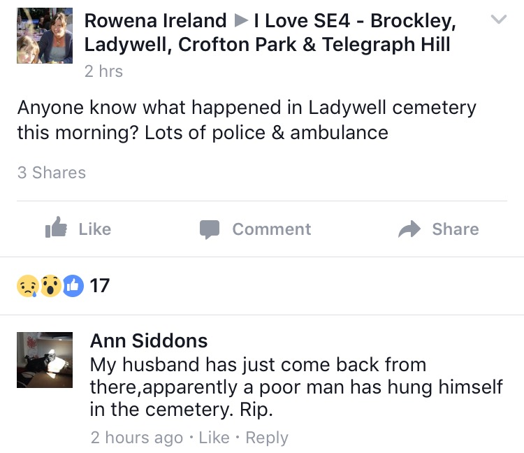 Also an apparent suicide at Sydenham Hill station this morning too. What an awful day.