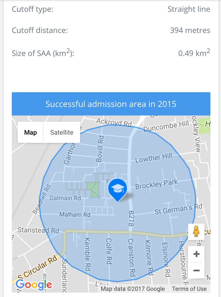 Perhaps consider the roads around Kilmorie Primary School as it is one of the larger primary schools (with a three form intake) and this reflects in the catchment area - although this year was larger than usual. It was recently awarded outstanding in all areas (that is virtually unheard of) and if you read the Ofsted report you can get a feel for the great community and supportive nature of the school. Do not worry about the size of the school as it has a strong community feel and the head teacher and everyone involved with the school are excellent. The wrap around care is very good especially now that it operates from the building that was previously the nursery as it is very well equipped and has a really nice feel - from 7:45am to 6:30pm.