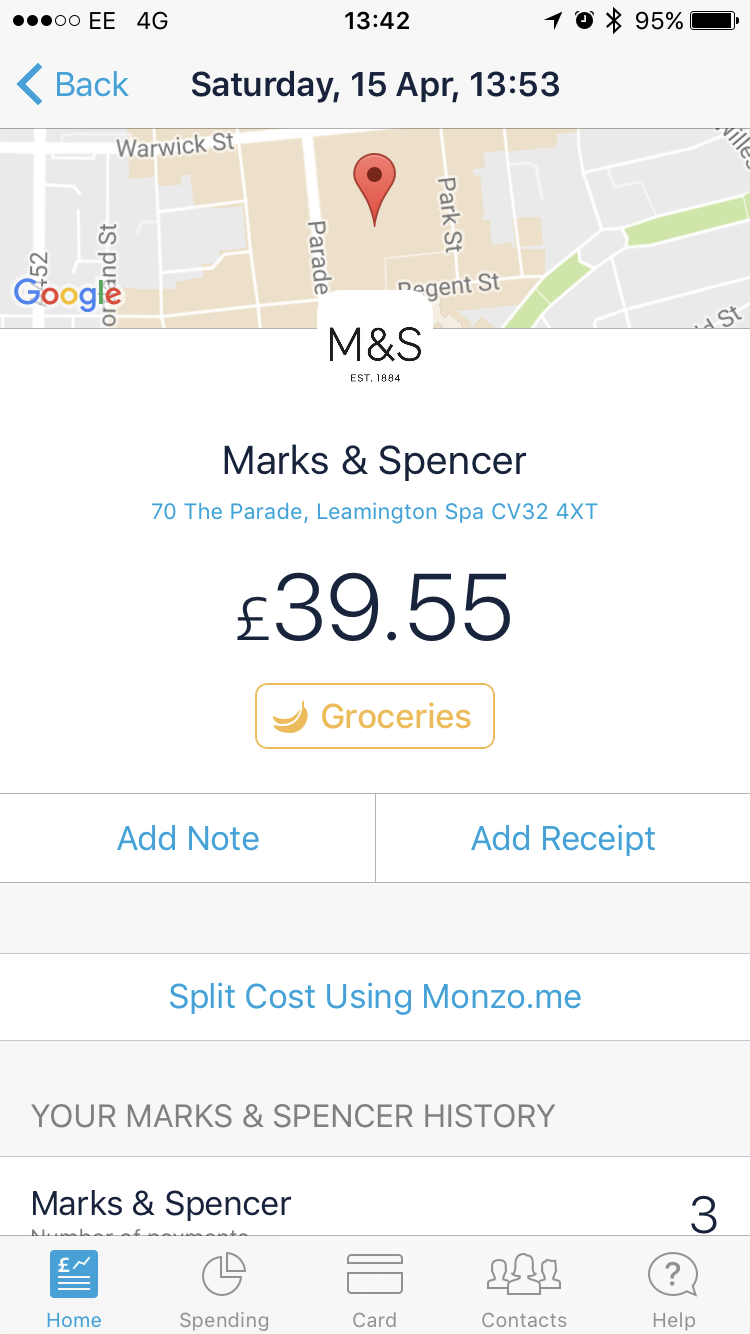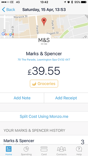 The interface is also very good. I like the way it auto-categorises and geo-locates transactions: