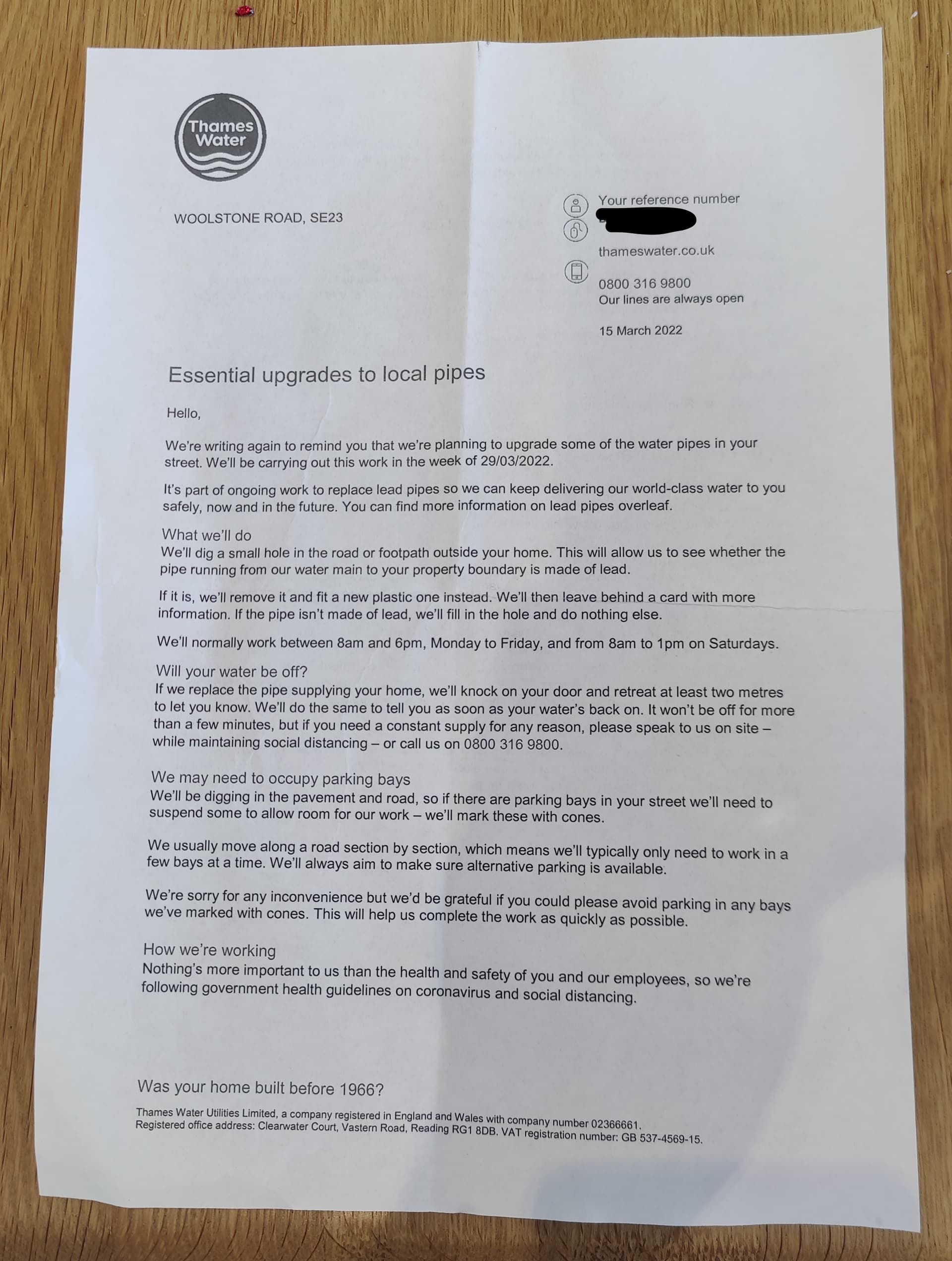 Thereās nothing showing for Woolstone Road on Thames Waterās website (neither on the long-term improvements page nor the short-term improvements page).